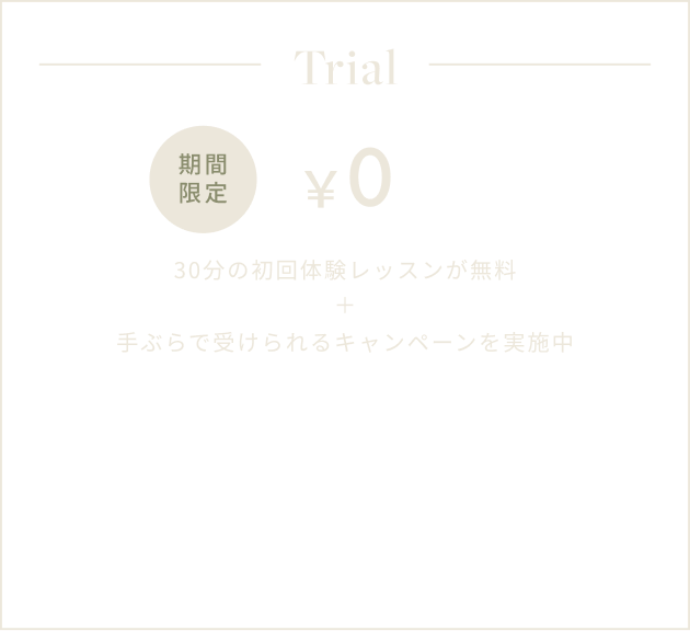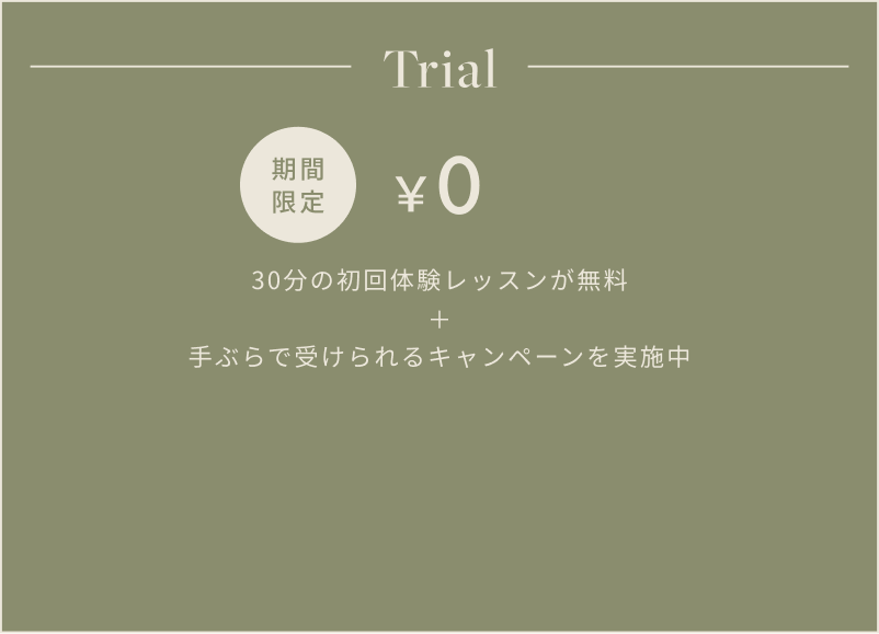 ※キャンペーン〆切:2026年1月末 ※過去3ヶ月以内にOlive pilatesの体験会を受講、またはOlive pilatesにて入会をしていない方が対象となります。 ※対象店舗にてご来店当日のご登録が必要です。利用開始月は当月あるいは翌月に限ります。 ※利用開始月を含む3ヶ月間、対象店舗で通い放題コース[17,800円/月]を特別価格[1,980円/月]に割引いたします。 ※4ヶ月目以降は、お好きなコース[8,900円~/月]・オプションに変更可能です。 ※特典の適用には、特別価格終了後12ヶ月間の継続が必要です。また、3か月間は利用店舗変更は出来かねます。 ※入会時に、キャンペーン特別価格でのご利用料金3,960円(2か月分)および、施設利用料2,500円をお支払い頂きます。 ※詳しくは店頭にてご確認ください。